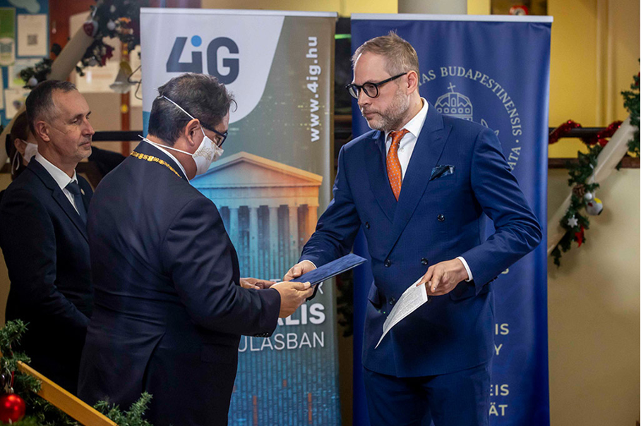 A 4iG Csoport vezérigazgatója Fekete Péter december 13-án adta át a vállalatcsoport 50 millió forint értékű adománylevelét, illetve a vállalatcsoport eszköztámogatását a Semmelweis Egyetem rektorának, Dr. Merkely Bélának, valamint az Egyetem rektorhelyettesének és a Gyermekgyógyászati Klinika Igazgatójának Dr. Szabó Attilának.